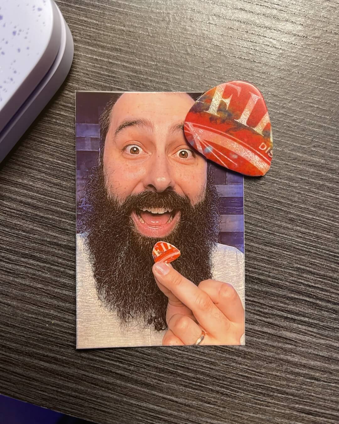 Every pick includes a mini certificate of authenticity with a signed photo of me holding your actual pick, because why not make it weird and wonderful?