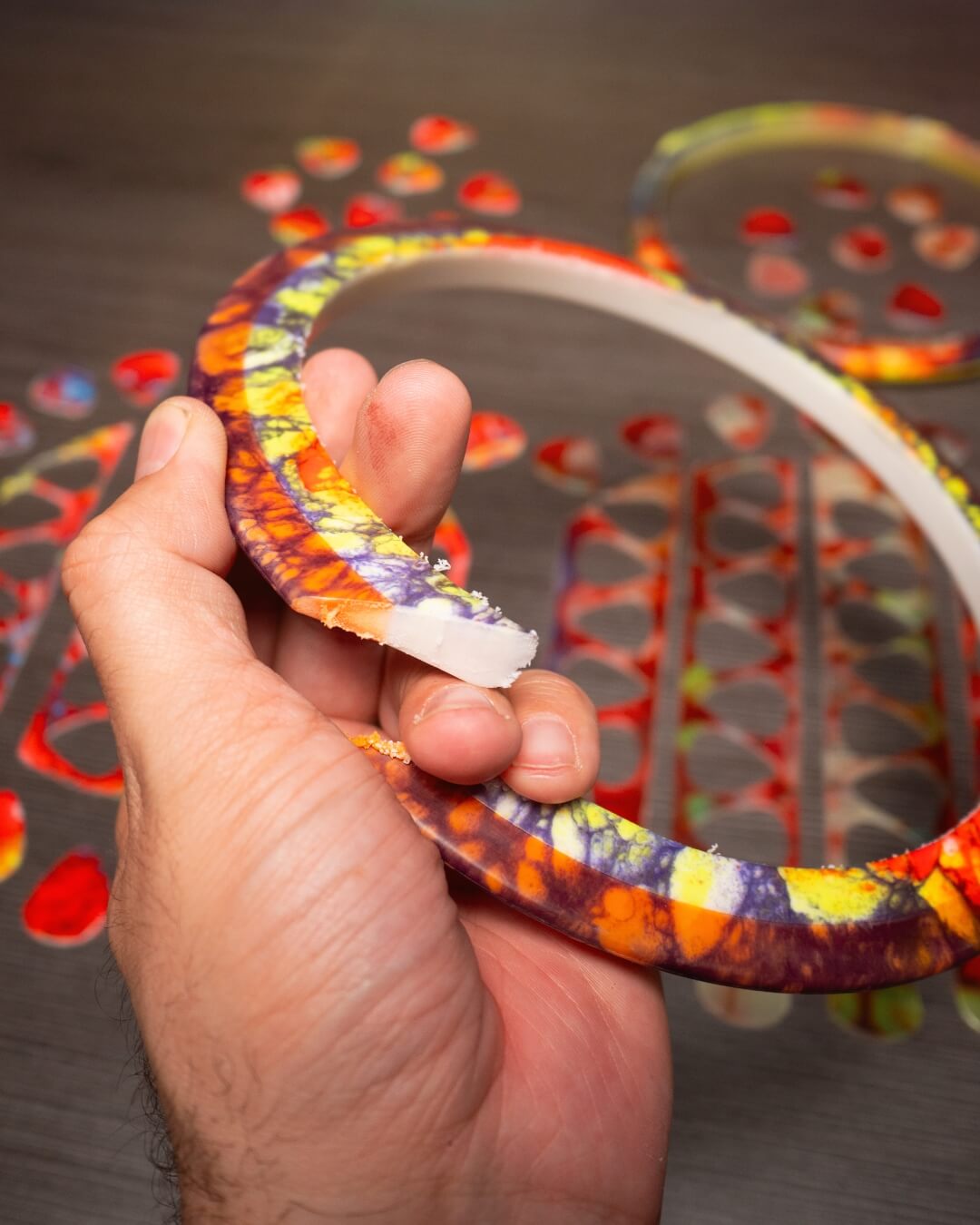 These one-of-a-kind guitar picks were hand-punched from real dyed disc golf discs used during the Upcycle Disc Challenge and includes plastic straight from my own bag. Each pick is unique, crafted from Eclipse or Fission plastic, and dyed live on stream. No two will ever exist again.