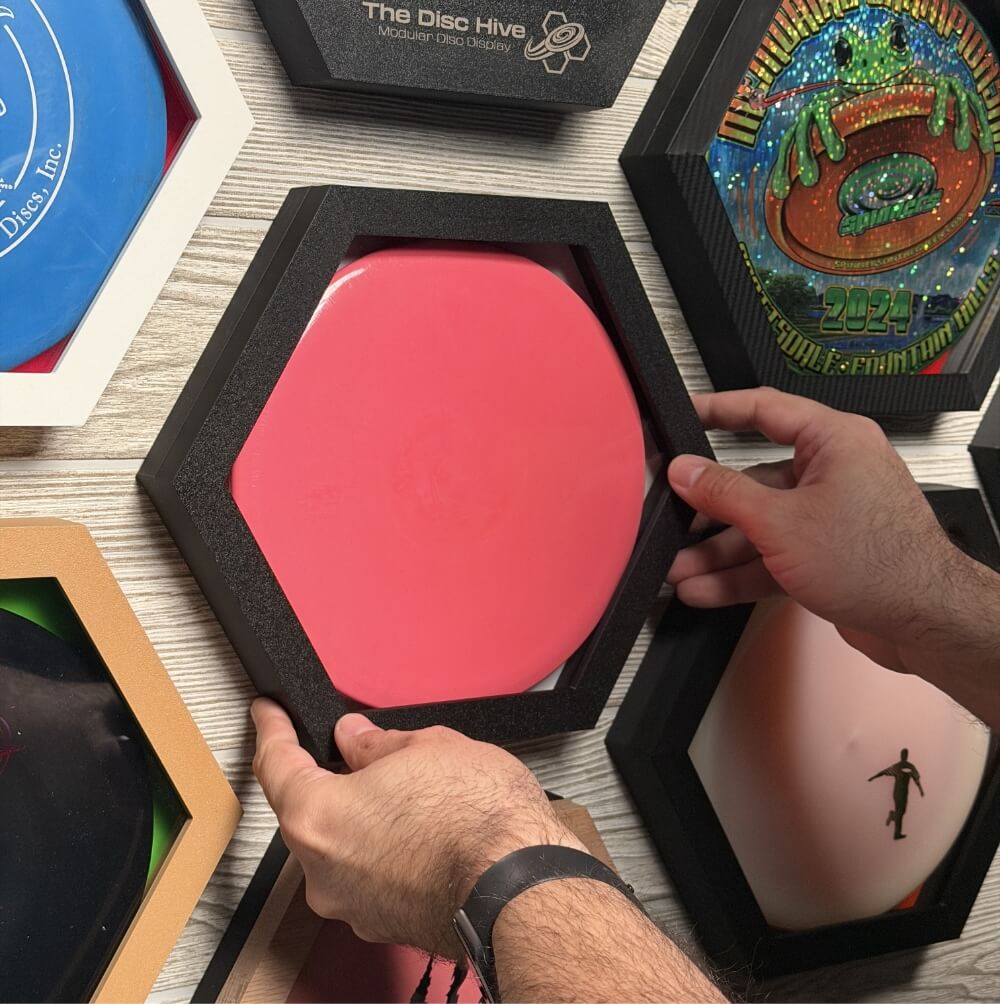 A secure, magnetic display built for disc golfers who want a better way to show off their favorite discs without hooks, slipping, or risk of damage.