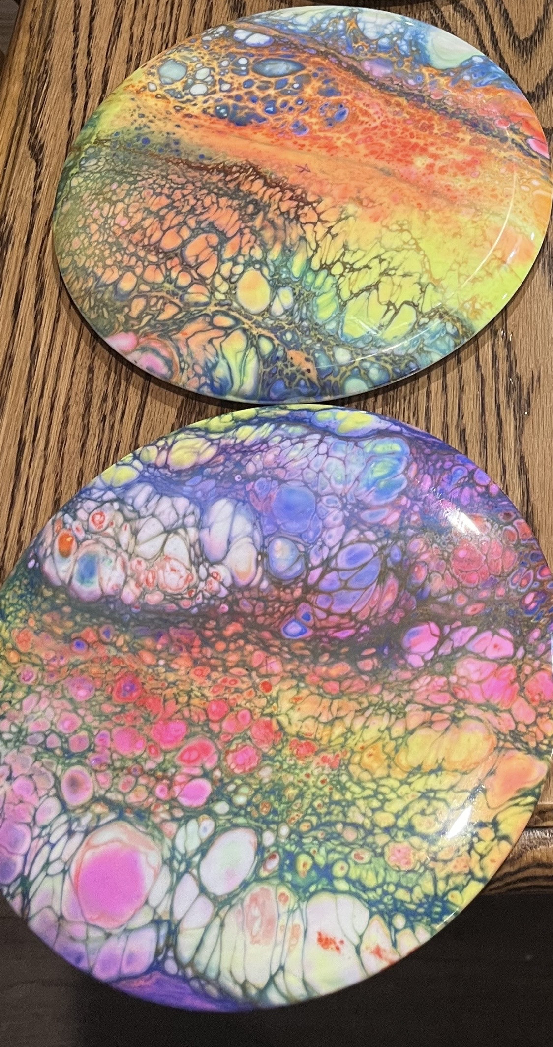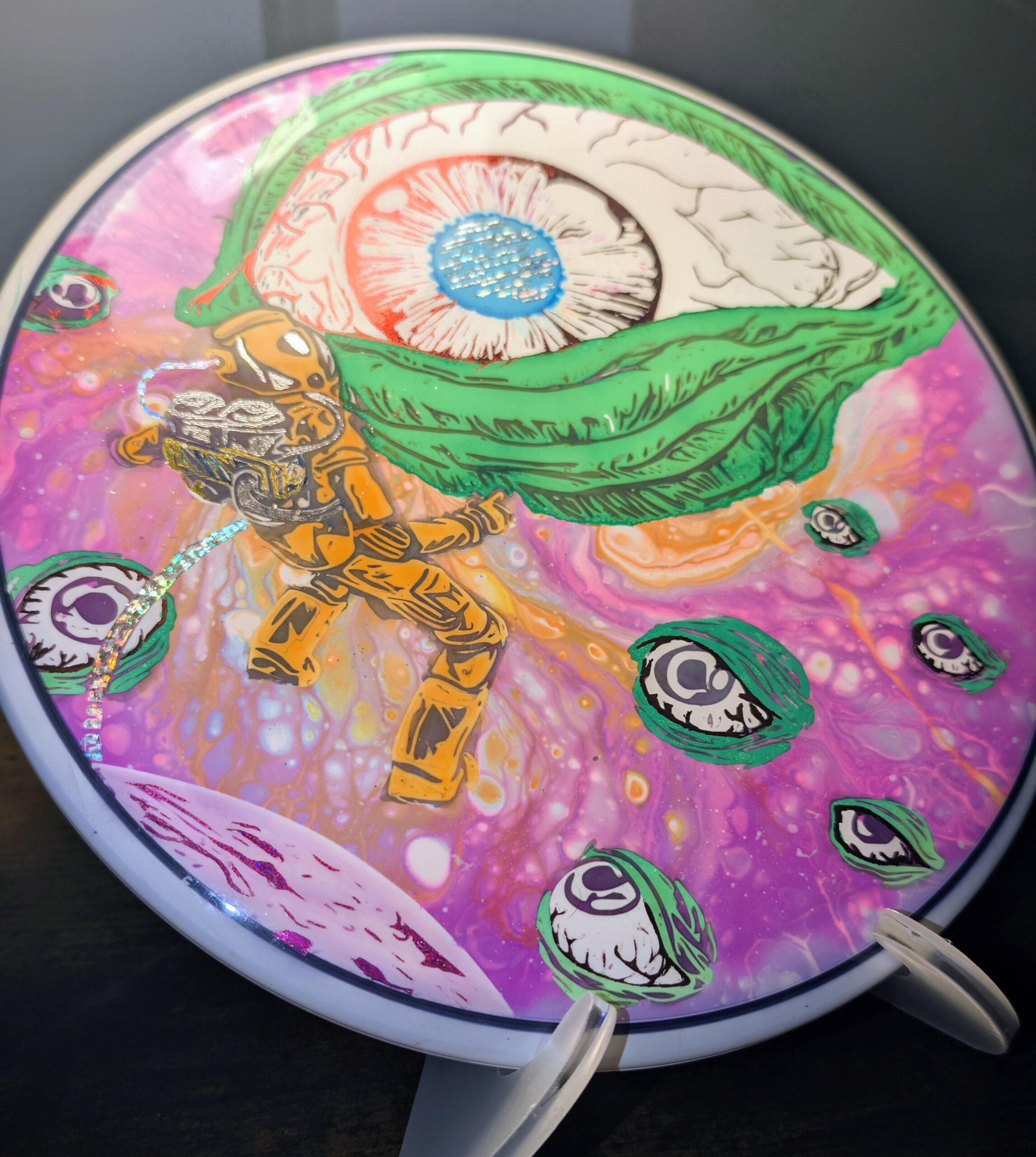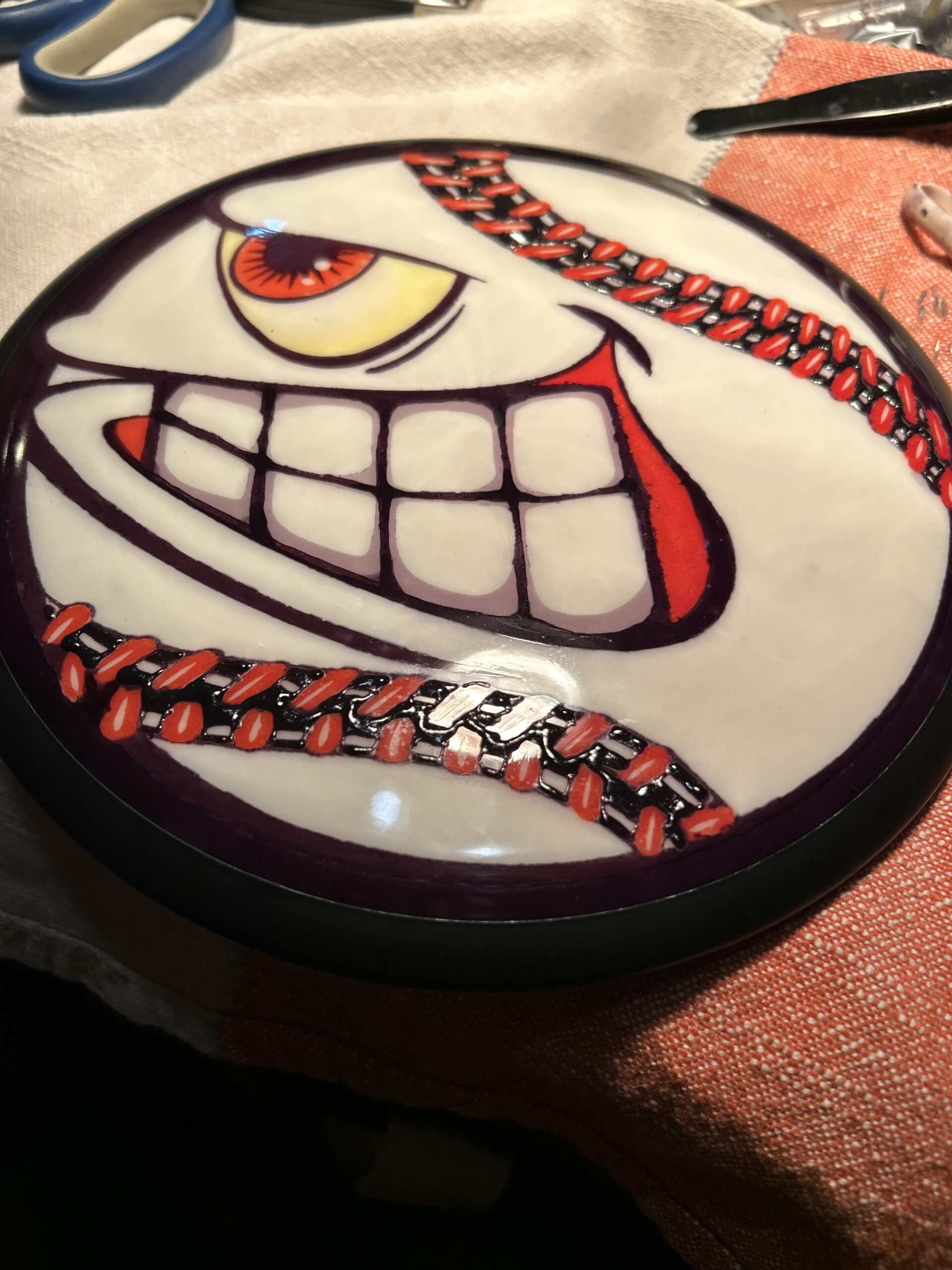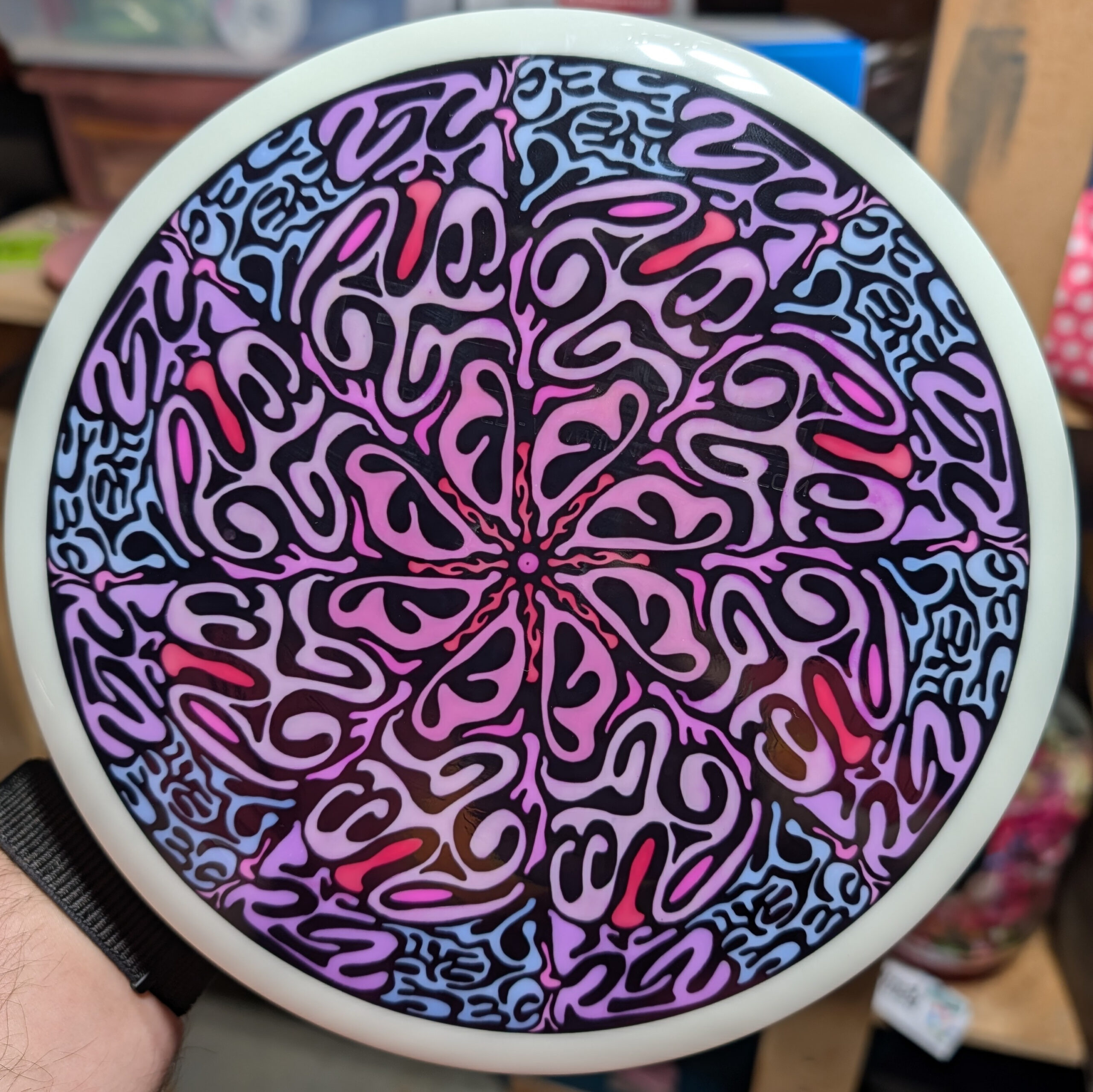 My first live was spin dyes but I’ve been gradually been leaning the arts of floetrol and vinyl stencils to round out my disc dying repertoire.