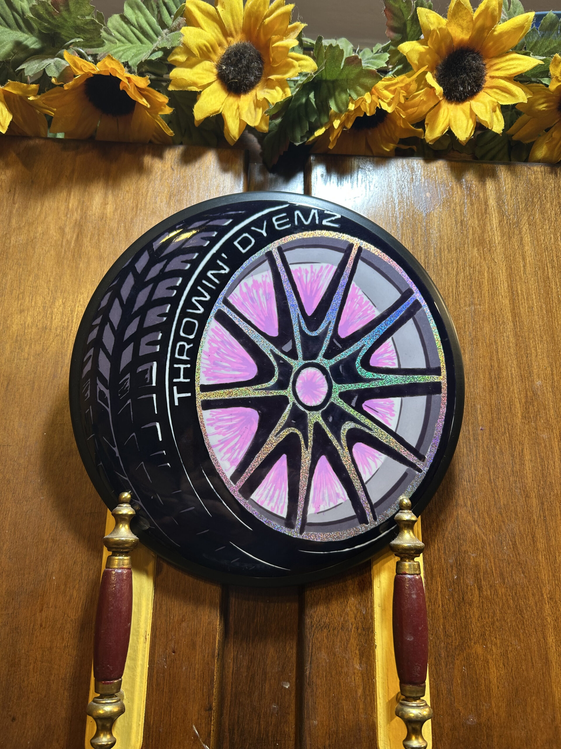 Haute Wheels—-Foiled rims and offset treads….100% Custom. Using cold lotion paint for the black.