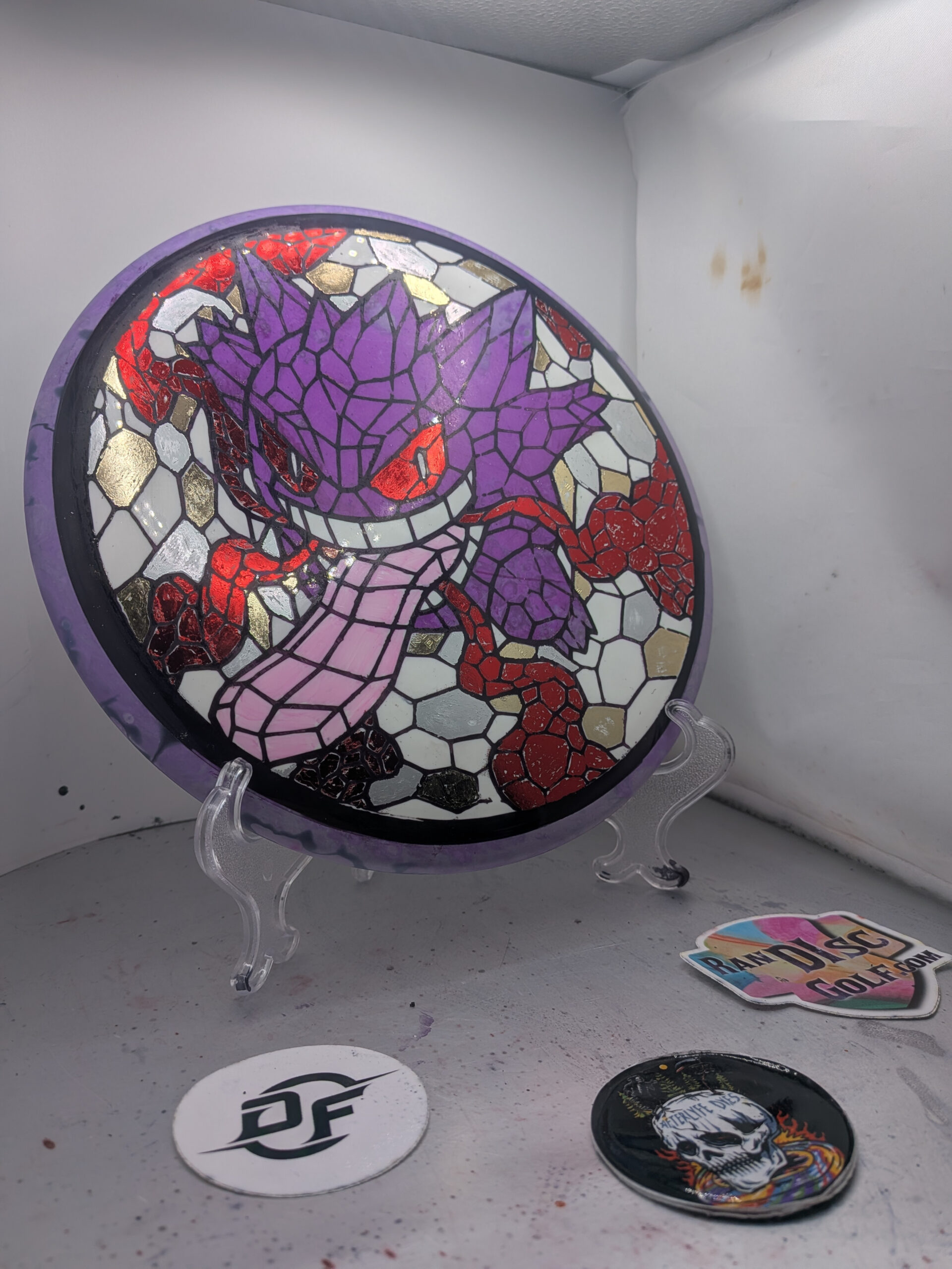 For this I did a floetrol dye for Gengar and the edge of the disc itself using iris, neon purple, and lilac all from PCAD.