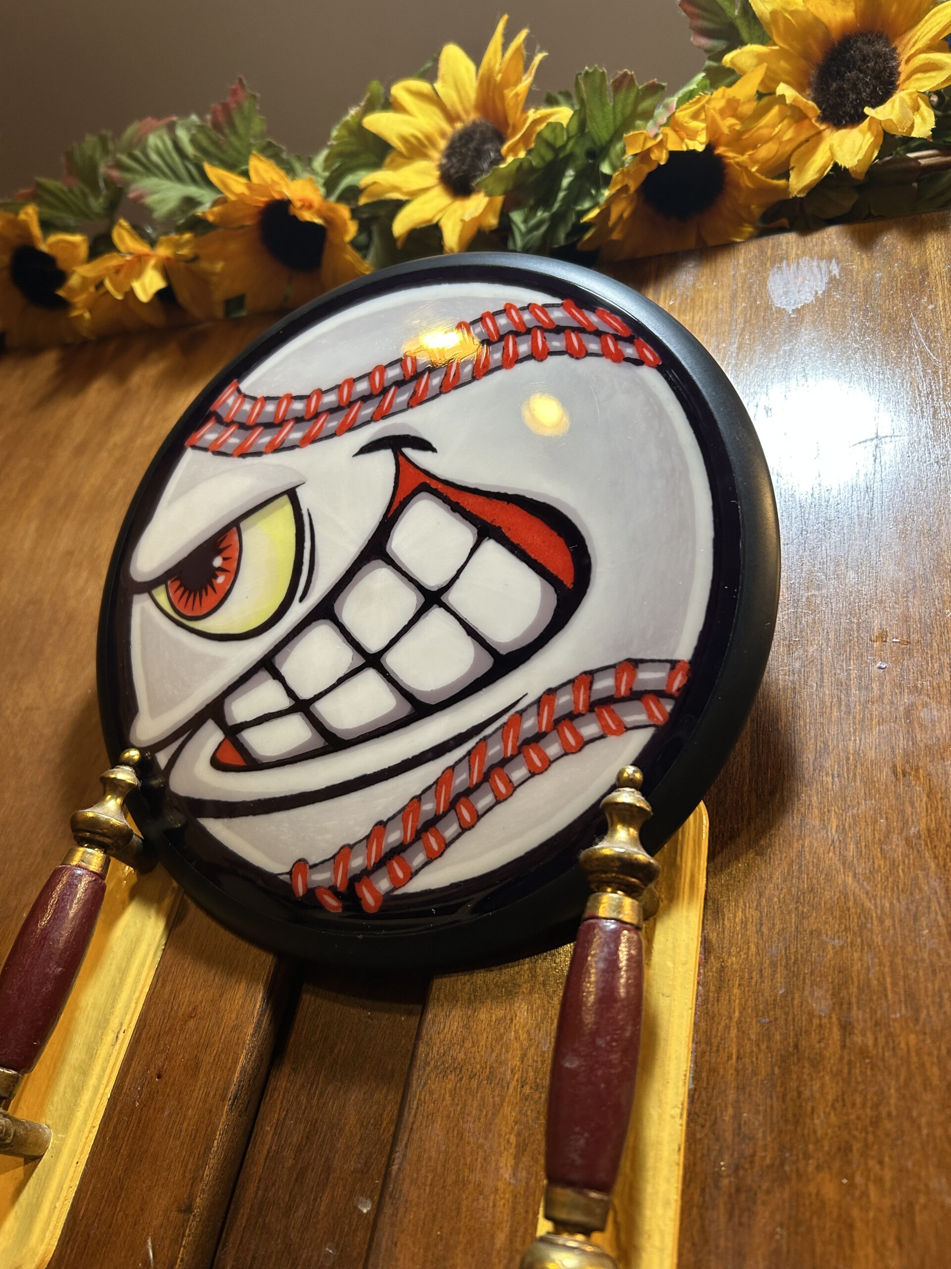 Meet Charlie Hustle….roller disc that gets on the ground and runs….. using lotion paint and timing for the shading.