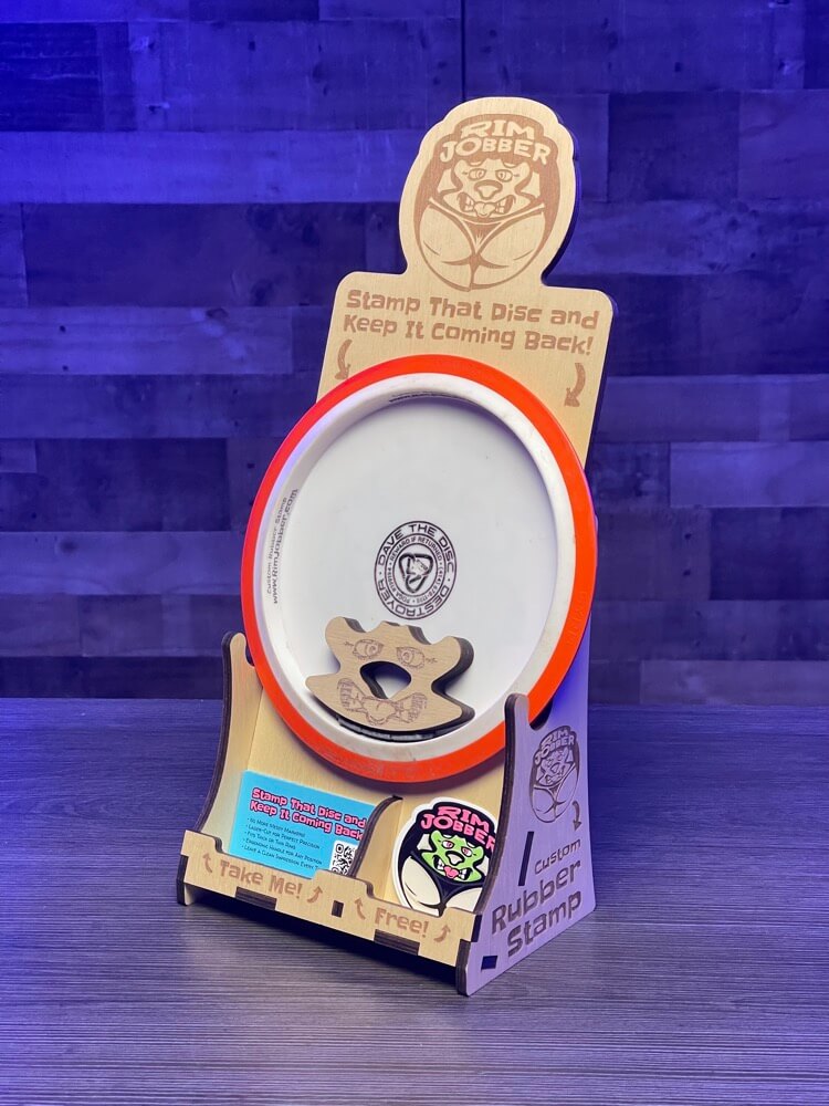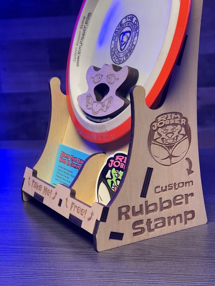 Introducing the Rim Jobber, the cheekiest way to leave your mark! This custom rubber stamp is designed to hit the sweet spot – right on the inner rim of your discs. Whether you’re a disc dyer wanting to impress customers or a disc golfer keeping track of your plastic, the Rim Jobber has you covered.